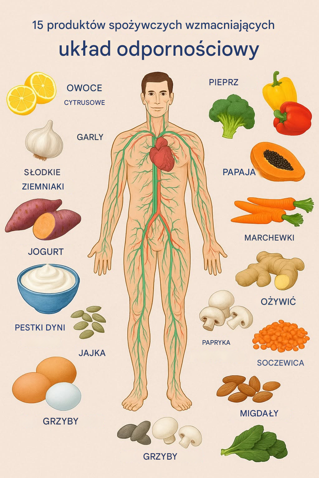 Silny układ odpornościowy to najlepsza obrona organizmu przed chorobami i infekcjami. Chociaż nie ma magicznego pożywienia, które mogłoby całkowicie zapobiec chorobie, niektóre pokarmy mogą pomóc organizmowi skuteczniej zwalczać wirusy, bakterie i stany zapalne. W tym artykule przyjrzymy się 15 pokarmom wzmacniającym układ odpornościowy , sposobom ich wykorzystania, gdy jesteś chory, oraz prostym sposobom na włączenie ich do codziennych posiłków.