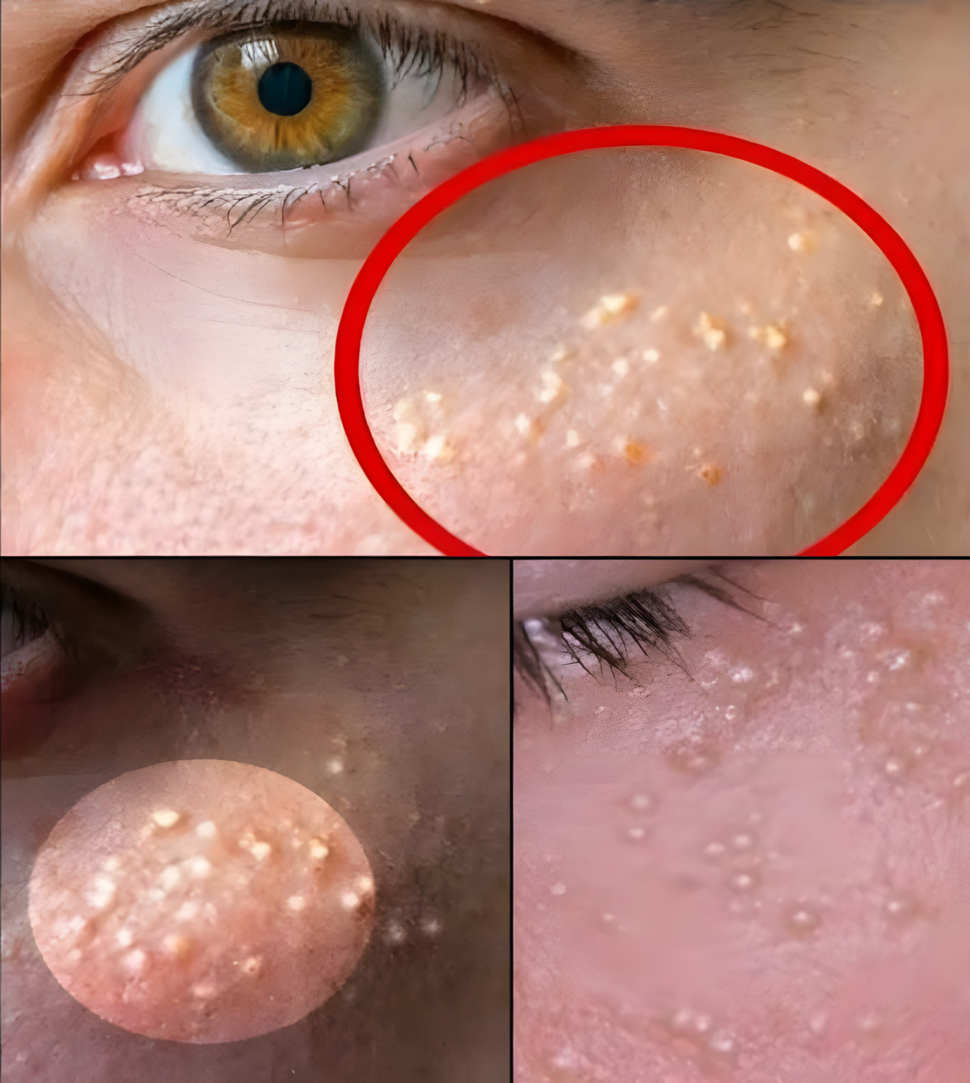 To małe, białe cysty, które rozwijają się, gdy martwe komórki skóry zostają uwięzione pod skórą. Często występują na twarzy (szczególnie wokół oczu i policzków).