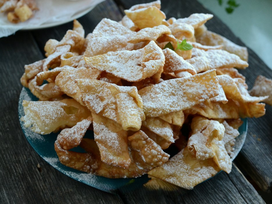 olej do głębokiego smażenia - Przepis na te faworki dostałam od właściciela mieszkania, które wynajmuję. Szybko się je robi, są mięciutkie i chrupiące. Nie trzeba pamiętać ilości składników, bo proporcje są dość proste do zapamiętania. Na pewno sprawdzą się w karnawale, polecam
