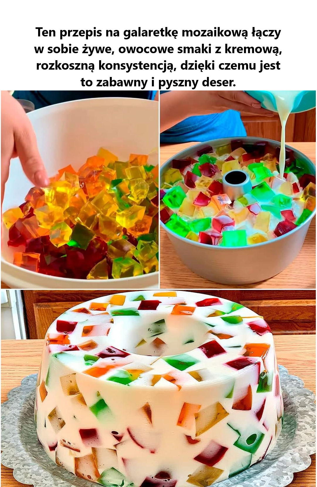 Ten przepis na galaretkę mozaikową łączy żywe, owocowe smaki z kremową, soczystą konsystencją, dzięki czemu jest to zabawny i pyszny deser. Łatwo go przygotować, wystarczy tylko kilka składników. Oto, jak go zrobić: