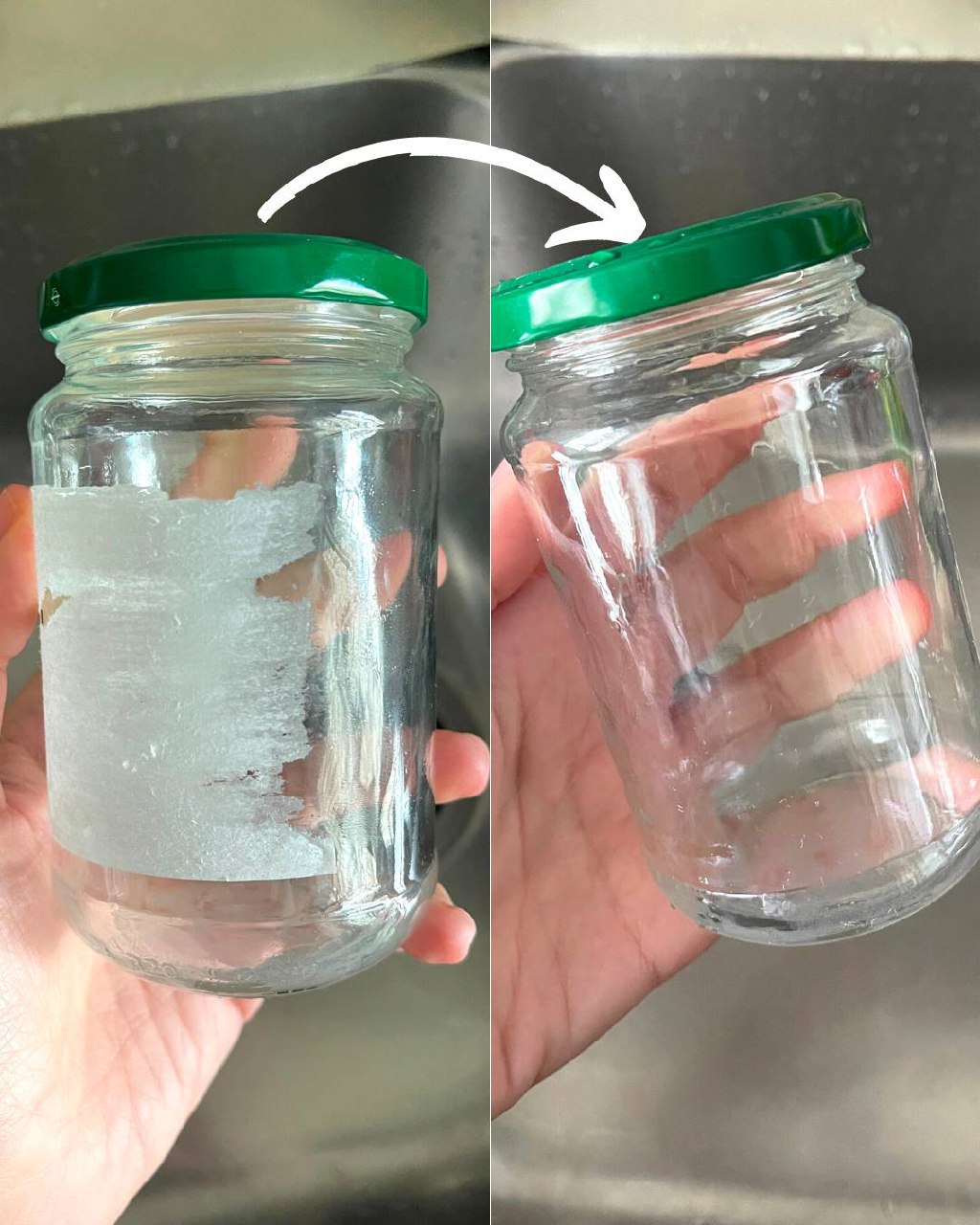 Zanurz słoik w wodzie na kilka minut, aby etykieta zmiękła.
