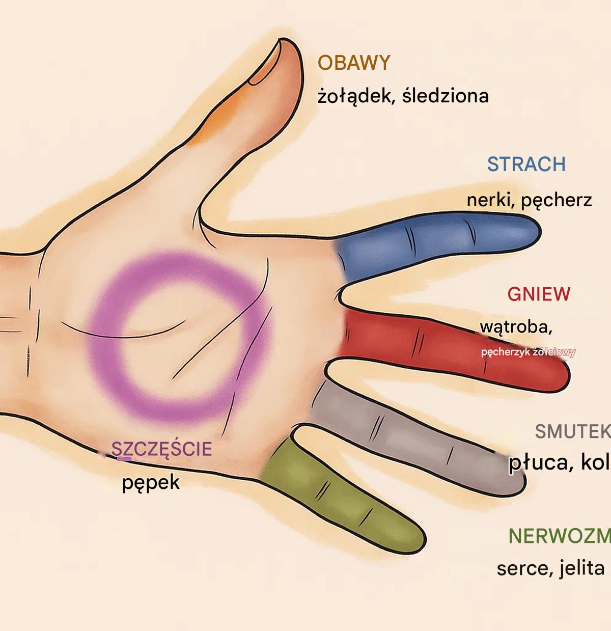 Podstawową ideą tej filozofii jest to, że każdy palec jest połączony z konkretnym narządem i emocją. Jeśli zdecydujesz się na pracę nad danym narządem, powinieneś uciskać powiązany z nim punkt na dłoni przez około 3-5 minut, starając się rozluźnić.