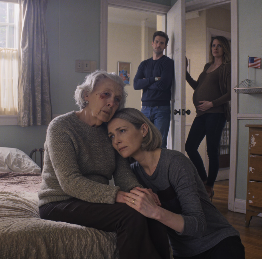 Pytanie mojej siostry Ruth przecięło stęchłe powietrze tego nędznego pokoju niczym ostrze. Siedziałam na skraju wąskiego łóżka, moje lewe oko wciąż było ciemne i opuchnięte, pulsujące z każdym uderzeniem serca. Mój syn, Marcus, stał przy drzwiach, jakby był ich właścicielem – wyprostowany, z ciałem ułożonym pod kątem, by zablokować wyjście.