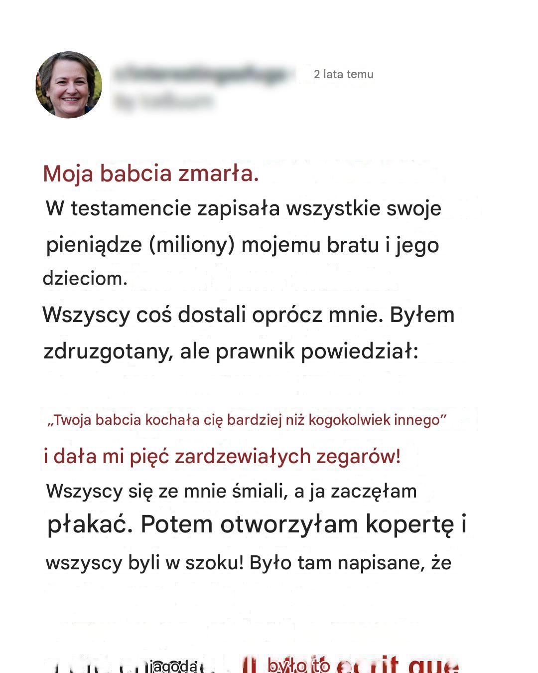 Chciwy brat dziedziczy dom i naśmiewa się ze swojej młodszej siostry, która otrzymuje od zmarłej babci tylko pięć zardzewiałych zegarów. Nie mieli pojęcia, co kryje się w tych czasomierzach.