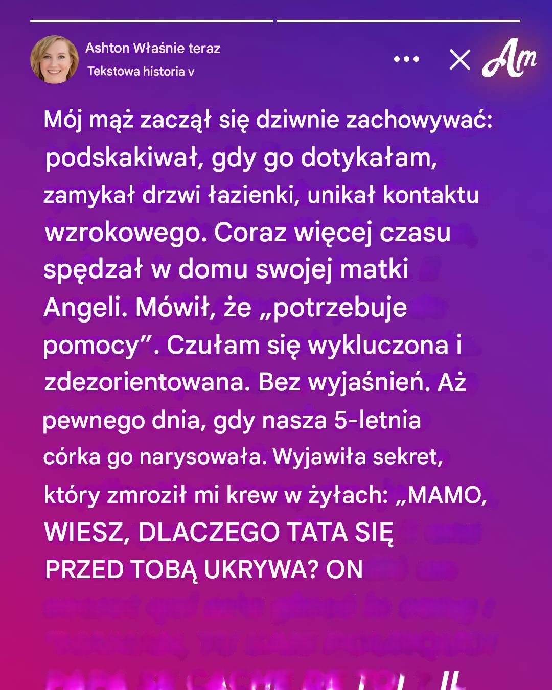 Wentylator nigdy nie opuszczał mojej strony łóżka. Nasza pięcioletnia córka, Carlie, biegała po domu w kostiumie kąpielowym, jakbyśmy mieszkali na plaży. W zasadzie mieszkała w basenie dla dzieci, który podarowaliśmy jej na urodziny. A jednak mój mąż, Alex, zawsze nosił długie rękawy.