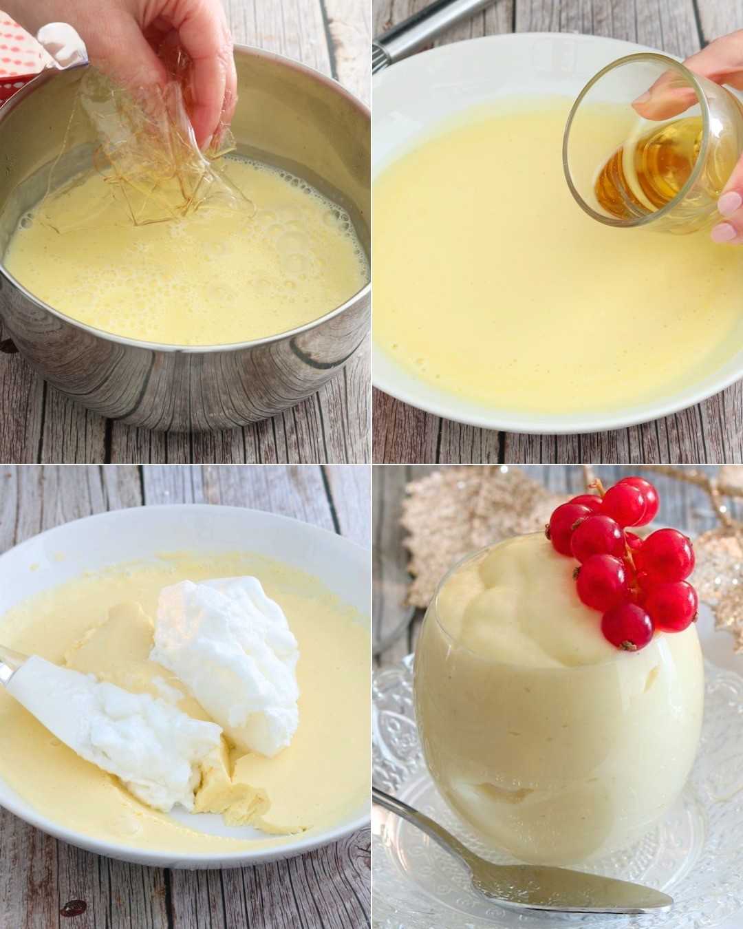 Namocz listki żelatyny w zimnej wodzie przez około 15 minut, aby zmiękły.