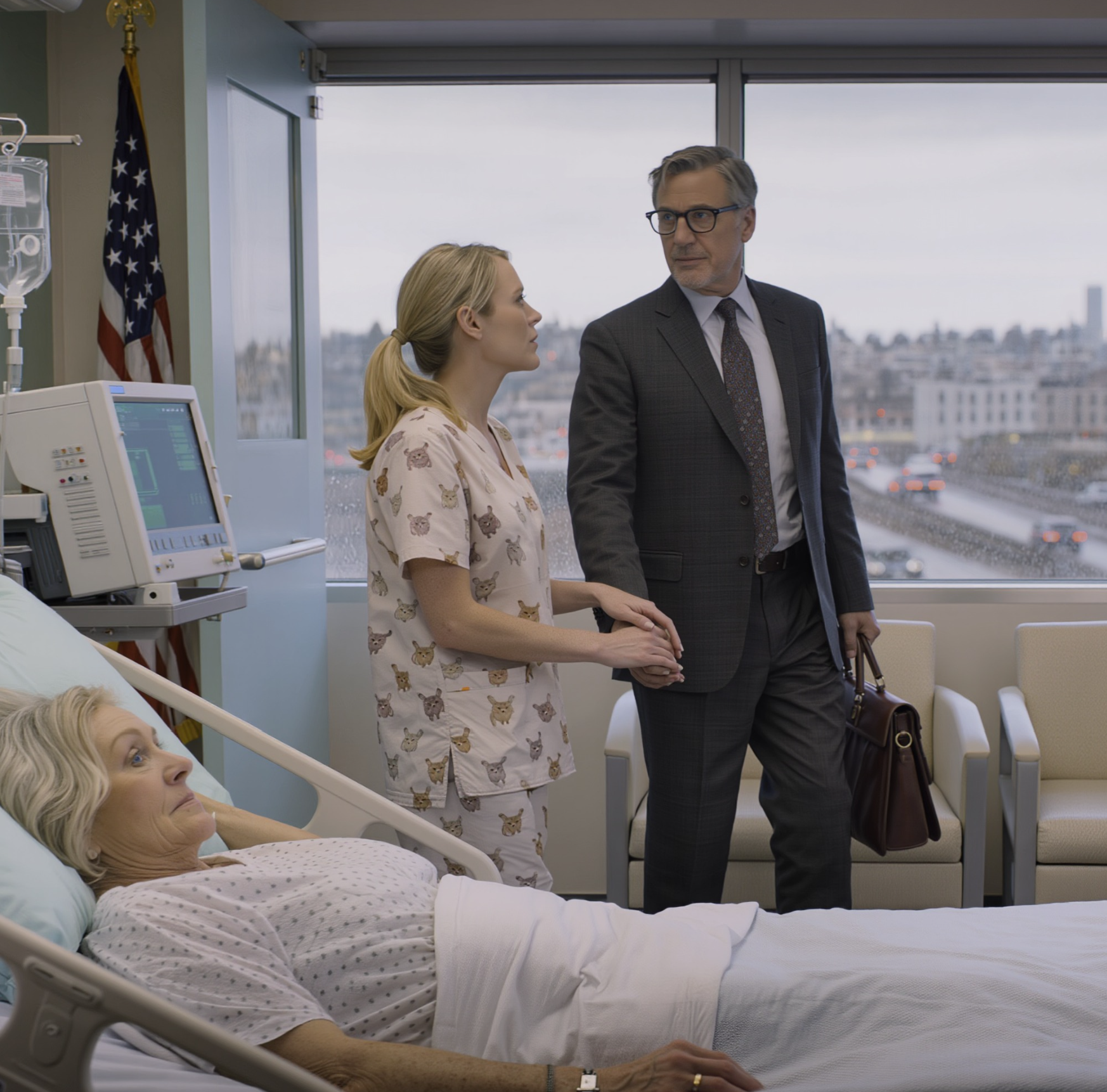 Obudziłam się sama po operacji. Pielęgniarka powiedziała: „Państwa dzieci wyszły. Powiedzieli, że parking jest za drogi”. Zaczęłam szlochać. Nagle wszedł wysoki mężczyzna w garniturze i delikatnie ujął mnie za rękę.