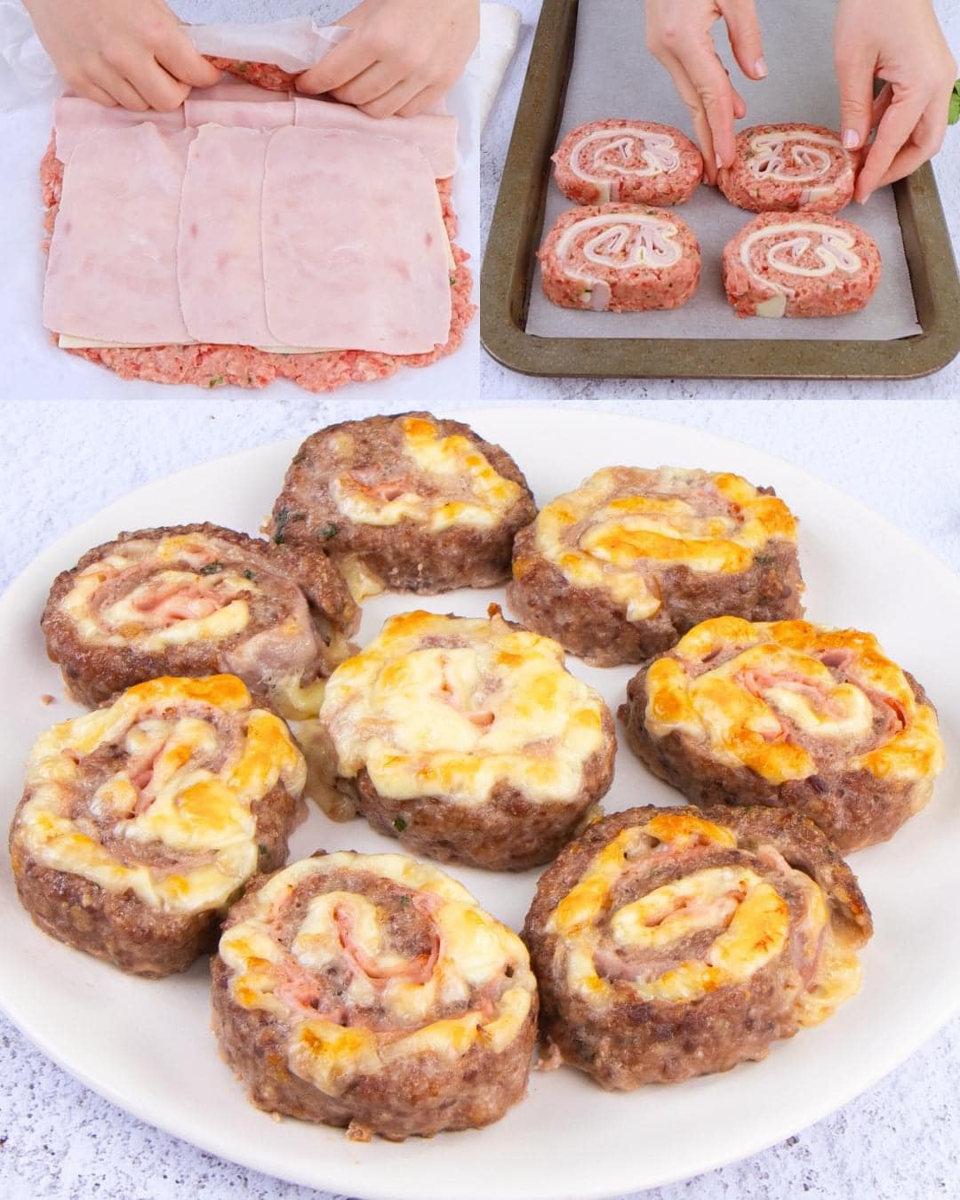 Roladki z szynką i serem to pyszne drugie danie z włóknistym środkiem, które przygotowujemy jako alternatywę dla klasycznego kotleta mielonego na lunch lub kolację: przypadną do gustu nawet dzieciom. Przygotowanie jest bardzo proste, wystarczy wymieszać mięso mielone z jajkiem, parmezanem, bułką tartą, natką pietruszki, solą i pieprzem; Następnie ciasto zostanie rozwałkowane, wypełnione pokrojonym serem, gotowaną szynką i zwinięte. Następnie należy pozostawić ciasto w lodówce na kilka godzin, a następnie przygotować pyszne bułeczki, które będą piec w piekarniku przez pół godziny.