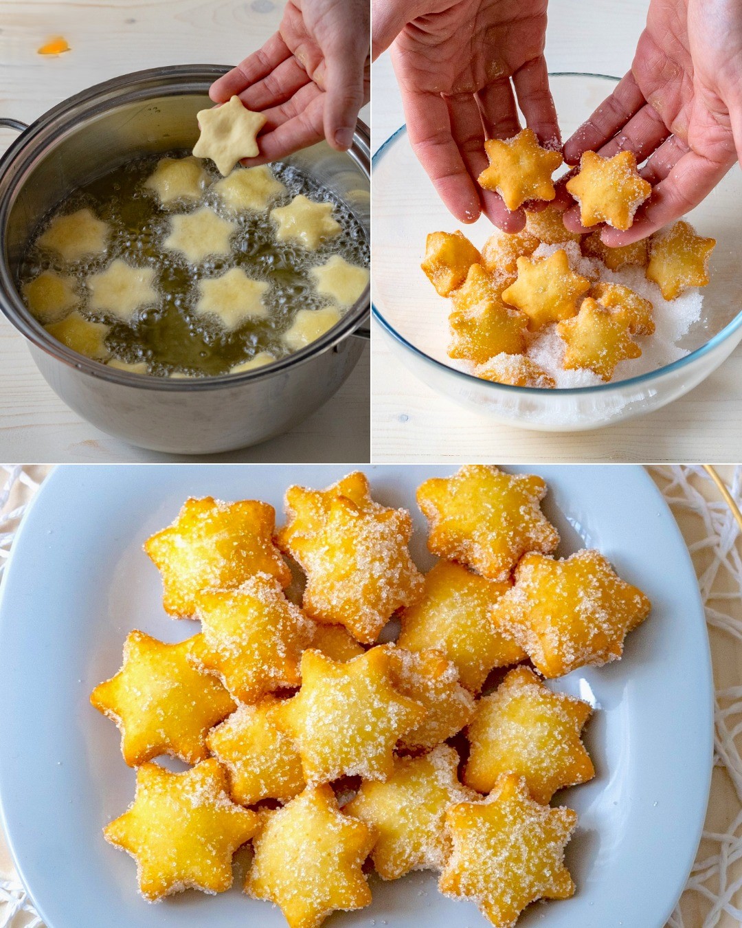 Smażone gwiazdki pomarańczowe to pyszne i słodkie przekąski, które dosłownie oszaleją za Twoimi dziećmi. Przygotowuje się je w mgnieniu oka i nie wymagają wyrastania: wystarczy wymieszać mąkę z sokiem pomarańczowym, uformować z ciasta małe kwiatki, a następnie usmażyć je w gorącym oleju. Efektem końcowym są złociste i aromatyczne kąski, które po obtoczeniu w cukrze pudrze i podaniu na gorąco zamieniają się w nieodpartą przekąskę. Zalecamy przygotowanie ich w większej ilości, ponieważ znikną w mgnieniu oka. Odkryj, jak je zrobić, krok po kroku, zgodnie z naszym przepisem.