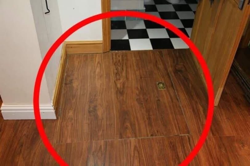 Przed drzwiami łazienki znajduje się klamka na podłodze, która prowadzi do sekretnego miejsca.