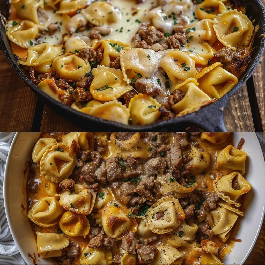 Tortellini z serem i stekiem w bogatym sosie provolone 🍲😍😋