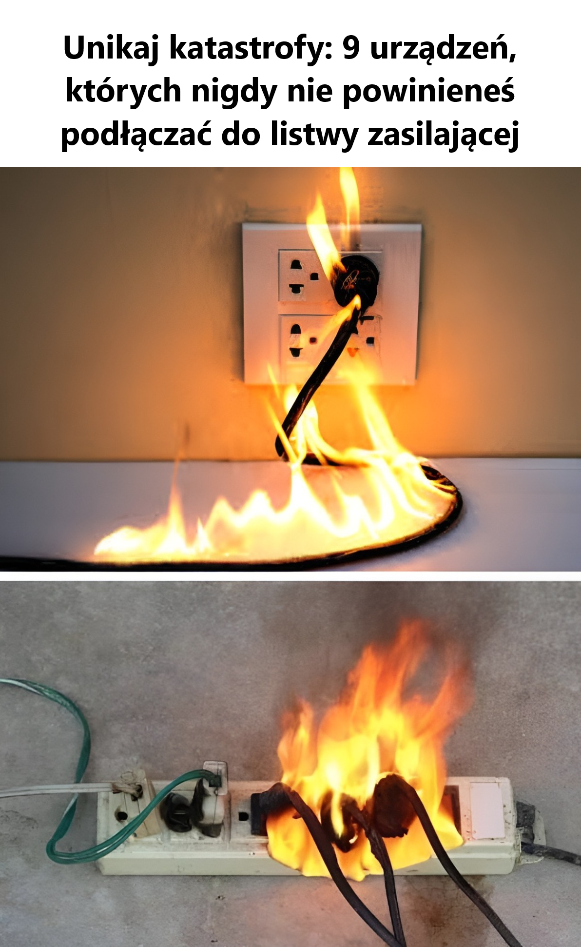 1. Duże urządzenia: Urządzenia takie jak lodówki, pralki i klimatyzatory pobierają znaczną ilość energii podczas uruchamiania, co może przeciążyć listwę zasilającą i spowodować jej przegrzanie, a nawet zapalenie.